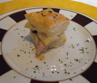 Though the prix-fixe menu is gone, two standards remain. One is the amuse bouche, a complementary hors d’oeuvre not much bigger than a single bite-size. The term “amuse-bouche” translates to “mouth amuser,” but is often regarded as a n introduction to the chef’s style; a way the chef can get guests’ palates excited with a glimpse as to what is coming. We didn’t think anything could top the tomato sorbet, but the shredded pork sandwich on puff pastry came close. To call it merely a “shredded pork sandwich” is to do this delicious morsel an injustice. The pork was obviously carefully tended to and seasoned to perfection. It was so good, a tray of these little gems would not have been enough.
