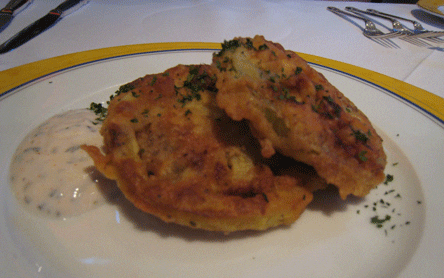 Our other appetizer, fried green tomatoes with a mint-yogurt sauce, was better than any fried green tomato appetizer or entree we ever had during eight years of living in the Deep South. These fried green tomatoes were better than Fannie Flagg’s award-winning novel Fried Green Tomatoes at the Whistlestop Cafe. The tomatoes were perfectly green and thoroughly fresh, moist and delicious. Best of all, they were allowed to shine courtesy of a very light, golden crust and a mint-yogurt sauce that ameliorated the flavor of those tomatoes.
