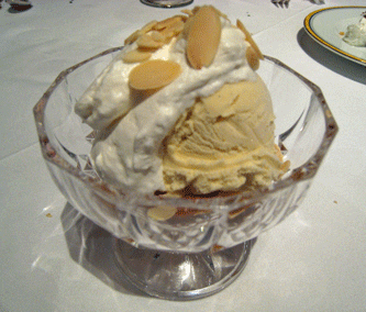 Though we generally split desserts, the “finish” offerings are so appealing that we each had to have one. My choice was the fresh sauteed summer peach compote with household vanilla ice cream, warm bourbon sauce, whipped cream and toasted almonds. What a world of difference fresh peaches make over canned peaches and these tasted as if they had been picked right off a peach tree at the absolute peak of perfection. They were juicy, sweet, succulent and good enough to stand out on their own. The housemade vanilla ice cream, warm bourbon sauce, whipped cream and toasted almonds were the proverbial frosting on the cake, incremental improvements to something we didn’t think could be improved.