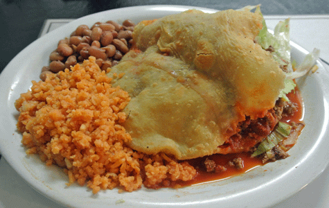 While Rey’s Web site is effusive about the restaurant’s entire menu, only one item occupies a place of prominence on a wall where it shares space with framed artwork. The poster extolling the virtues of Rey’s gorditas is both explanatory in nature and a delicious marketing tactic. Read the poster and you’ll probably order the gorditas plate. Gorditas are basically deep-fried pockets of cornmeal or flour dough engorged with a savory mixture. At Rey’s the corn or flour cakes are slow-cooked on the grill, sliced open and stuffed with your choice of carne asada, carne adovada, barbacoa, carne desebrada (tender, slow-cooked shredded beef), shredded chicken, carnitas and carne molida (ground steak). The carne adovada-stuffed gorditas are terrific. The combination of the corn masa cake and the red chile marinated, tender pork make for a very interesting and wholly delicious pairing. The gorditas plate is served with rice, beans and red or green salsa. By the way, shame on Taco Bell for that abomination they’ve tried to pass off as a gordita.