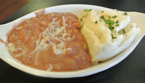 Entrees are served with your choice of two of the following: beans, rice, calabasitas and green chile mashed potatoes. The beans are an absolute must-have. While several New Mexican restaurants prepare their beans in lard, the beans at Prickly Pear have the unmistakable bouquet and flavor of smoky bacon. Bacon and beans are one of my favorite combinations, made even better with shredded white Cheddar. The green chile mashed potatoes are a pleasant surprise though we thought they lacked creaminess and the green chile didn’t really make its piquant presence felt. Still, it’s a refreshing change from the de rigueur beans and rice choices.