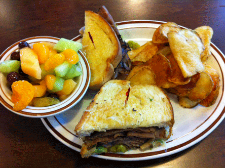 Burgers and sandwiches are served with your choice of two sides, among the most popular being the fresh, homemade potato chips and unique crinkle wedge fries. Two sides means prodigious portions of each–sides which dwarf any competitor’s offerings. The potato chips can be terrific if not left too long on the fryer. They’re slightly thicker than the bagged chips which all too easily crumble into annoying little pieces. The chips are also relatively lightly salted. The crinkled wedge fries are Texas sized and delicious. Other sides options include gourmet onion rings, fresh fruit, cottage cheese. You can also substitute a small salad or bowl of soup for the two sides