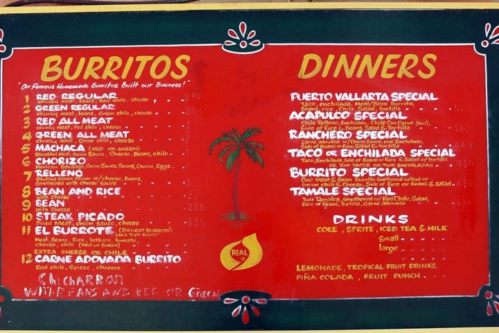 The restaurant truly lives up to its name with an extensive menu of homemade burritos and tacos. Wood signage boasts “our famous homemade burritos built our business!” It’s a business that’s been going strong for more than a quarter century. The original restaurant location in the Southeast Heights has long been a popular dining destination for Air Force personnel stationed at nearby Kirtland Air Force Base.