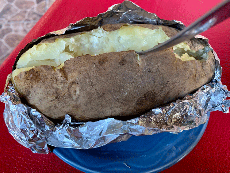 7 January 2020: While beans and rice are always a nice accompaniment to a half-chicken, a papa asada (roasted potato) goes even better, but you’ve got to have an appetite to pair the two. A recurrent contention on this blog you’re probably tired of reading is that Mexican restaurants really know what they’re doing when roasting potatoes. It’s certainly no different at Bandido Hideout where a Nerf football-sized tuber split down the middle and lavished with butter and cheese is delivered steaming to your table. Baked potatoes aren’t always categorized as “comfort food,” but at Mexican restaurants, they’ll certainly assuage your hunger.