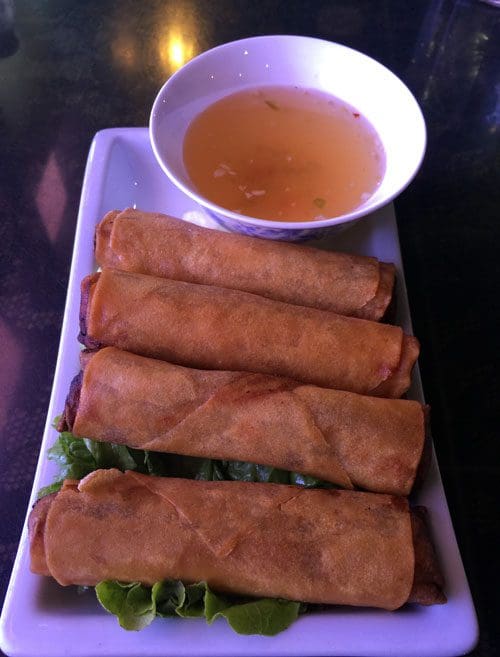 14 June 2017: The history of Vietnam is one of colonization by conquering nations. Centuries of colonization fashioned what ultimately evolved into Vietnamese cuisine, distinctly different from the cuisine of any intervening conquerors. Vietnamese egg rolls are on example. While they bear some resemblance to their Chinese progenitors, preparation and flavor are entirely different from the Chinese version. Vietnamese egg rolls are smaller and more crispy, wrapped and lightly fried in rice paper and filled with seasoned bits of vegetables and served with the ubiquitous nuoc mam sauce. Nuoc mam is considered the Vietnamese alternative to soy sauce, but it’s so much more than that. It’s a distilled and fermented fish extract used to season many dishes. Both the egg rolls and nuoc man sauce at the May Cafe are terrific.