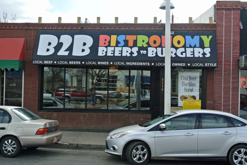 Any discussion among men of the best burger in Albuquerque will inspire reverential discourse, the type of conversation which draws out eloquence in the most verbally clumsy of men. A new candidate for any “best of” discussions are the burgers proffered by B2B Bistronomy which launched in October, 2012 in a 1,700 square-foot space previously occupied by the late, great and much-missed Vivace. The curiously-named burger restaurant might well serve the very best burger from among the half-dozen or so vaunted gourmet-upscale burger joints to have launched in recent years. Arguably (and that’s the point), most men (as well as women and children) will also find B2B’s burgers better than some, if not most (maybe all), of those served by well-established burger purveyors throughout the Duke City.