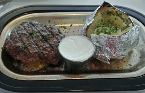 At first browse, the menu may appear to be solely a carnivore’s delight, a meat fest and protein party, but there’s actually something for everyone. Only four of the dozen appetizers include meat or fish based dishes and three of five a la carte salads also include meat. A number of sandwich and burger specialties can be had as well as several low-calorie items. The “From the Lakes and Seas” menu includes a number of seafood items, including market priced twin lobster tails while the surf and turf combinations give you the best meat and seafood items.