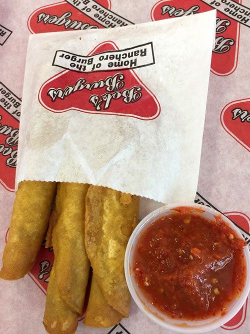 I’ve always contended that Española restaurants make the very best rolled tacos (sometimes called taquitos) in New Mexico. In fact, not many restaurants outside of Española even seem to offer rolled tacos. Bob’s does and while they’re not quite as wonderful as their northern counterpart, they’re better than the warehouse store version.