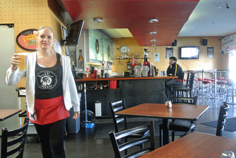 Entrepreneurial founder Derek Young understood what the college crowd wanted: pizza, beer, big screen televisions, free Internet access and wireless connections in an unpretentious and informal ambiance–the quintessential college hang-out experience. Beer and pizza alone make it better than being at home. Even better is having attractive servers bring them to your table. It’s certainly not pandering if you give your demographic what they want and Brickyard Pizza has been doing just that for nearly a decade.