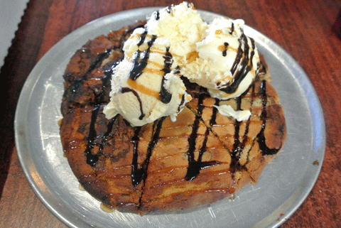 If, miraculously, you have room for dessert, Brickyard Pizza has three options: a scoop of Vanilla ice cream, a pizza cookie and a root beer float. The pizza cookie is intriguing and delicious, albeit offering a week’s worth of calories and sugar. A warm, soft cookie is presented on a personal sized pizza pie plate then topped with your choice of toppings (chocolate, caramel, raspberry) and three scoops of ice cream. It’s a good dessert if you’ve got a very sweet tooth, but may offer a bit of an overload if you like sugar in moderation. Students probably appreciate it because their metabolisms are faster than mine.