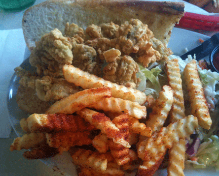 Cajun Kitchen starters include seasoned Cajun fries which are much better than the flaccid fries most restaurants serve–so good, in fact, they’re starting to catch on in other restaurants. As good as the crispy seasoned fries (coated in Cajun seasonings) are, most diners will start off with a crawfish basket, an oyster basket or a shrimp basket, all three of which feature fried, delicately breaded seafood. The popcorn crawfish tend to be the most fresh, with the surprising sweetness crawfish tend to have. All are served with traditional cocktail sauce, but are better with the “po’boy sauce,” a sweet, tangy orange marmalade sauce that contrasts nicely with the briny seafood taste. It goes without saying that the well-dressed oyster po’boy should have plenty of that po’boy sauce.