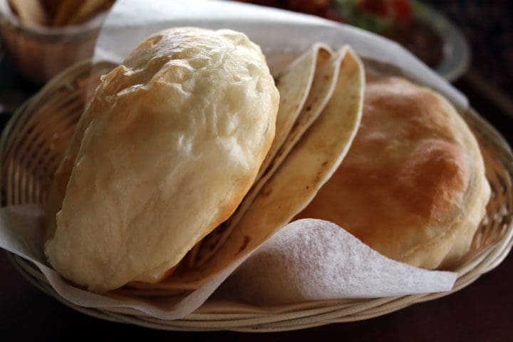 Repeat after me (to the tune of the old Big Mac jingle) — one all-beef patty, refried beans, lettuce, cheese, tomato and chile (red, green or both) on two sopaipilla “buns.” That’s the sopaipilla burger, still one of the most popular and celebrated items on the menu. The sopaipillas are more dense than the puffed-up sopaipillas on which New Mexicans love honey. They’re formidable enough not to fall apart at the moistness of other ingredients, but if the chile is ladled on a bit too generously, expect your hands to be covered in the red or green stuff.