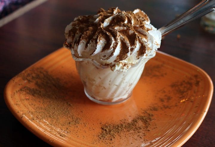 3 January 2017: Casa de Benavidez offers a number of desserts: German chocolate cake, carrot cake, fried ice cream, flan, natillas, brownies and a sweet roll. The natillas are topped with a very generous dollop or ten of whipped cream. When scraped off, not much of the natillas actually remain. That’s too bad because these natillas are cinnamon rich, creamy and delicious.