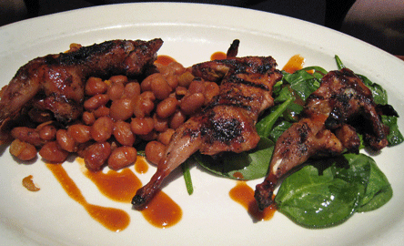 Grilled quail showcases the chef’s mastery of the grill. Although quail is among the least “meaty” of the poultry family, it does have a surprisingly high ratio of breast meat relative to the bird’s size. It also does not taste like chicken though its meat does vaguely resemble the dark meat from chicken in color and texture. At Chama River, the quail is rubbed with a spice mixture that accentuates the just ever so slightly gamy flavor of the quail. It’s utter deliciousness that will have you wishing quail was the size of a chicken. This entree is served with bourbon beans and sauteed spinach tossed with a bbq vinaigrette. Both are worthy accompaniments to the small in stature, large in flavor quail.