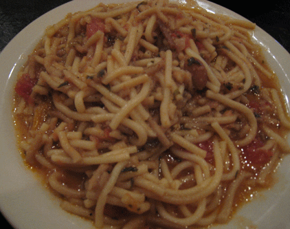 The fideos are another comfort food favorite that brings back memories of huddling around the dinner table during heavy winter snowfalls. Unlike spaghetti which is seasoned (sometimes heavily) with oregano and garlic, this New Mexican vermicelli noodle dish is lightly seasoned and light on the tomato sauce, too.