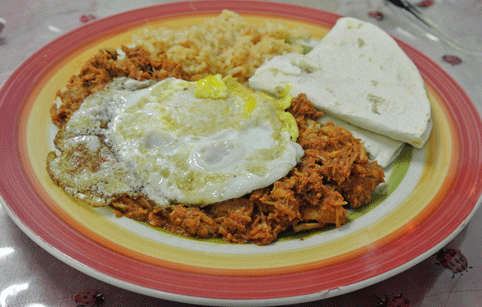 Jack Handey, a Saturday Night Live writer (who now lives in Santa Fe) renowned for his “Deep Thoughts” once remarked “If God dwells inside us like some people say, I sure hope He likes enchiladas because that’s what He’s getting.” Enchiladas are certainly one of the most popular of New Mexican entrees and my usual benchmark for how good a New Mexican restaurant is. The Beef Enchiladas at the San Antonio Crane are an exemplary rendition of enchiladas: three flat corn tortillas layered with beef and topped with cheese and onions as well as your choice of red or green chile (or both). The green chile is slightly more incendiary than the red chile, but both are very flavorful. The enchiladas are served with Spanish rice and beans, some of the most pulchritudinous pintos in New Mexico.