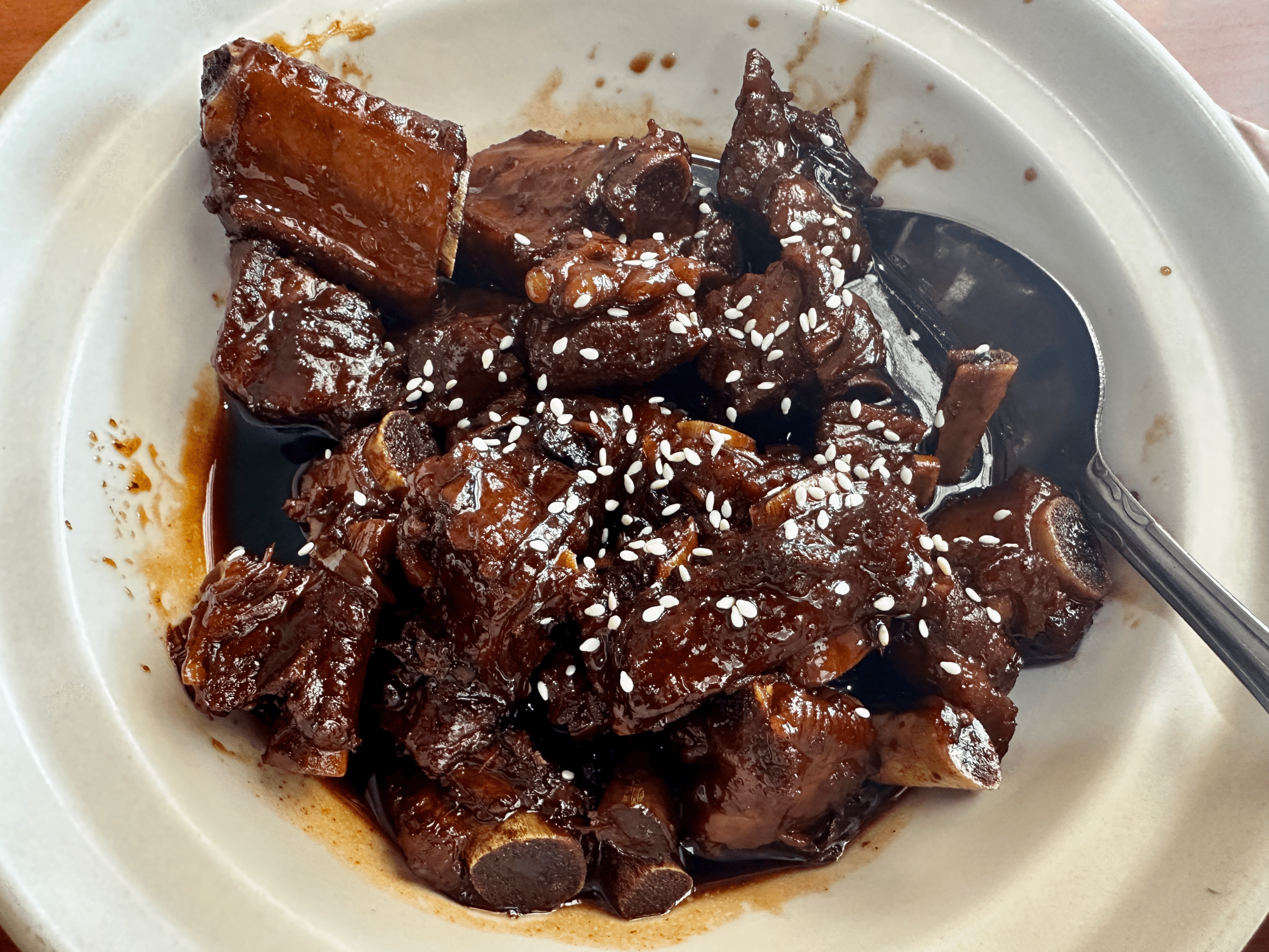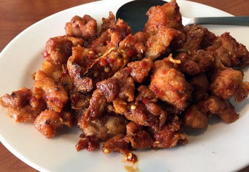 5 November 2025: Pork entrees include Vinegar and Sugar Ribs in which pork ribs are stewed with soy sauce, Chinese vinegar, various seasonings and what is likely brown sugar. Not everyone appreciates a sweet and savory combination, and even if you do, this may be too much of a good thing–as in not enough taste contrasts for you to continue enjoying it with the same gusto as you had when gnawing the meat off the first few bones. If you like sweet-and-sour Chinese food, you’ll likely enjoy this dish. My Kim certainly does, having ordered it during two successive visits.