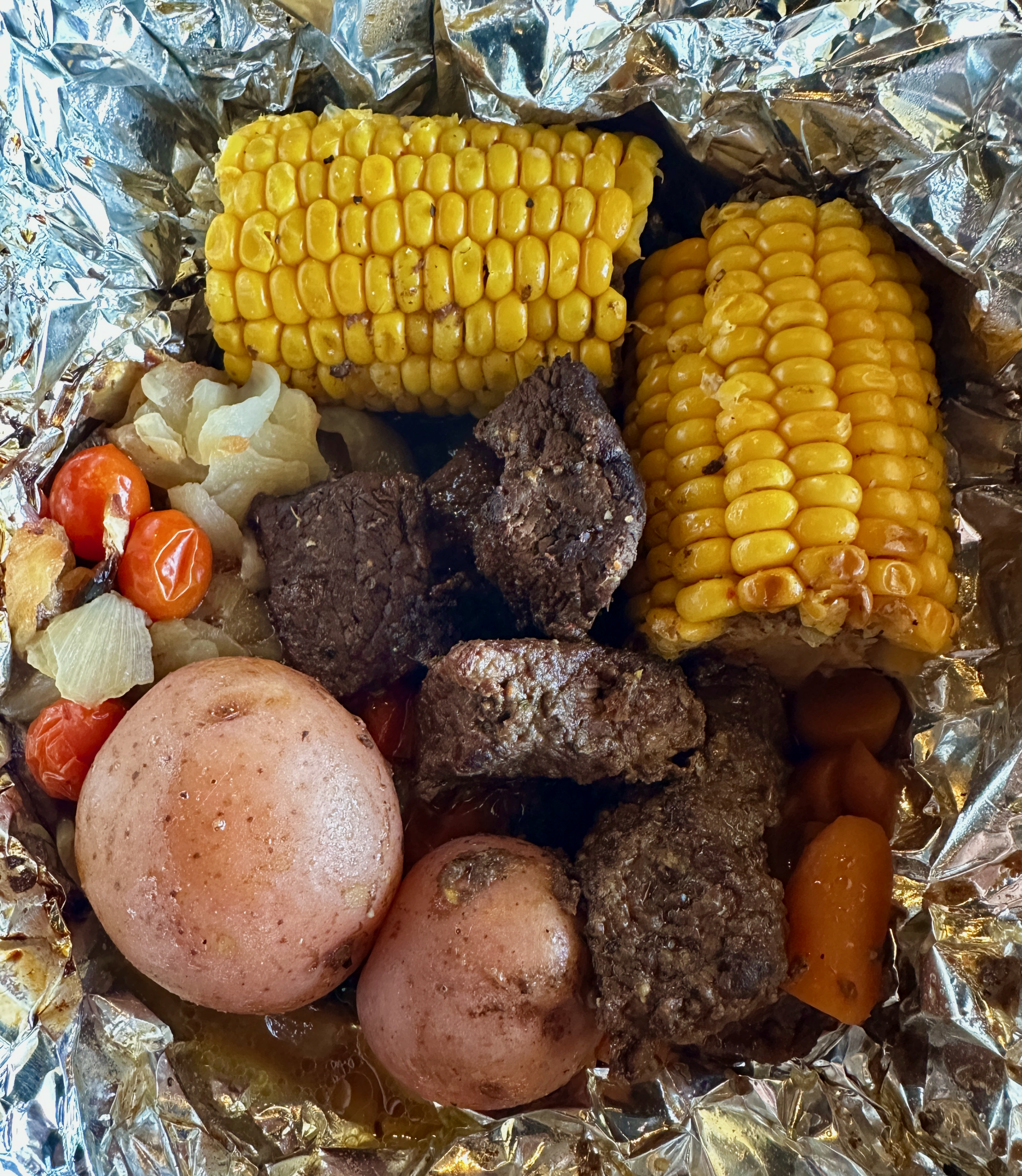 1 August 2025: Campfire meals “are known for being slow-cooked in foil or cast iron skillets with campfire-style seasonings and vegetables.” Each campfire meal includes two years of sweet corn, potatoes, carrots, tomatoes and onions in a savory broth. My Kim’s choice was the campfire chicken (a savory, marinated half-chicken seasoned with a signature campfire blend, slow-cooked). This butyraceous meal surprised me. Vegetables were well-prepared and well-seasoned. The chicken did have a hint of campfire smoke. It was juicy and delicious. My choice was the campfire beef (tender beef slow-braised with the same vegetables and seasonings as the chicken, all wrapped in foil for maximum flavor). The beef was reminiscent of high quality stew meat. In fact, you could take every component of this campfire meal, put it in a stew pot and you’ll have one of the very best stews possible.