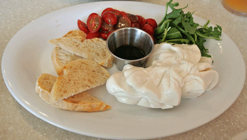 14 August 2015: Less than a decade ago, burrata was virtually unavailable in restaurants throughout the Land of Enchantment. My friend Sandy Driscoll would tell me about this rich, buttery cheese she enjoyed in restaurants throughout the Los Angeles area. We often thought of ordering it and having it shipped to us, but this is a cheese that’s meant to be consumed while it’s still fresh–as soon as possible after it’s made. As far as cheeses go, burrata is relatively new and not just to New Mexico. It wasn’t made until the 1920s then it took a while before it made it across the pond from Italy to the United States.