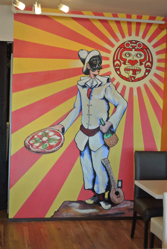 It was only fitting that a depiction of the official mascot of Naples adorned the wall of one dining room of Amore Neapolitan Pizza, the Duke City’s sole purveyor of Neapolitan style pizza. Pulcinella was depicted with a jug of wine on one hand and an entire pizza on the other with his mandolin resting against his leg. The pizza was personalized for his New Mexican home as green chile was laid out on the pizza in the shape of the Land of Enchantment’s Zia sun. In the background, as in the state flag, red rays spread out against a field of yellow. Alas, Amore no longer occupies its original home on Monte Vista and the beloved patron saint did not make the move to Amore’s new home at the Green Jeans Farmery (3600 Cutler Avenue, N.E.)
