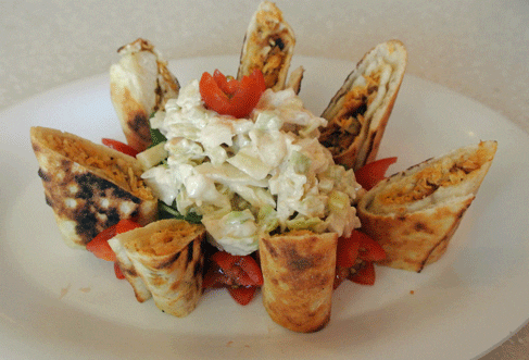 31 August 2013: Before you get to the pizza, there’s antipasti on which to nosh. The antipasti menu lists only four items, including a “pizza sushi” which honors Amore’s predecessor by nestling Bailey’s blackened mahi in a pizza roll topped with fresh apple-papaya slaw. The pizza sushi more closely resembles a blackened mahi egg roll sliced diagonally, but by any name, it would be delicious. The blackening spices used on the mahi give it the type of piquant bite New Mexicans love.