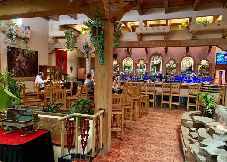 El Pinto has always reminded me of the famous Italian eatery Momma Leone’s, beloved by those folks who believe that marinara sauce should be made in 55 gallon barrels, and bread comes in Woner Bread sized loaves.. “touristy” immediately comes to mind. Dinner there reminds me of dinners on those giant behemoths of the sea, the ocean liner capable of feeding the hungry thousands of cruisers who are only satisfied by 12 eating opportunities a day.