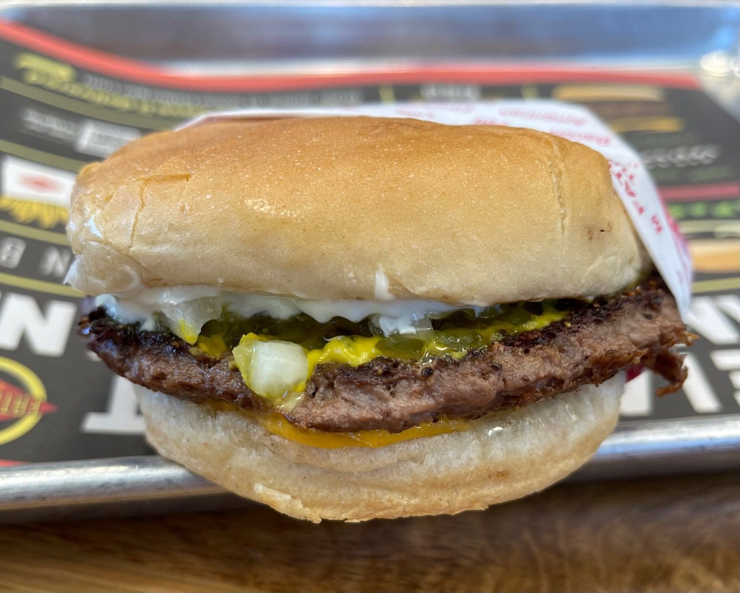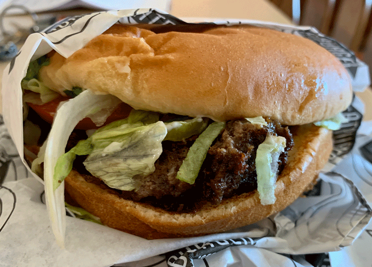 What is it about New Mexico and burnt burgers? It has a lot to do with who is working at the grill at the time. I’ve seen many committing that most vilest of sins – smashing the very life out of the burger with the back of the spatula. I guess if the grill chef likes well-done, then that’s what everybody gets. 5 Guys burgers puts a grill weight on it’s burgers rendering them cooked through, but witheringly dry.