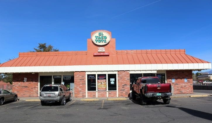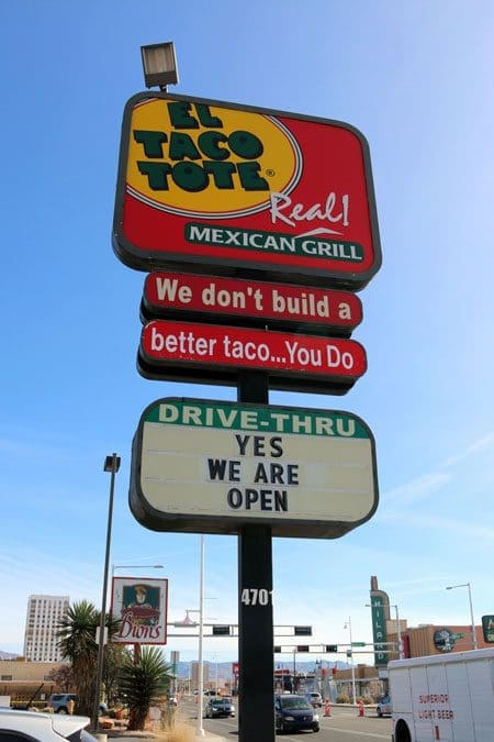 As we perused the colorful menu hanging on the wall at El Taco Tote, my friends Captain Tuttle, Bob of the Village Of Los Ranchos and I pondered the veracity of images depicting gargantuan tacos brimming with glistening meat and sundry toppings. Could these super-sized behemoths possibly be as large as pictured? Perhaps, as in “objects in the mirror may appear closer than they are,” these tacos only appear large in photos. Captain Tuttle, a semi-regular at Taco Tote, confirmed that the truth is somewhere between the perfectly posed tacos portrayed on the menu and those actually served. He recalled from previous visits, being served tacos with as much as four ounces of meat. That’s as much as McDonald’s vaunted Quarter-Pounder.