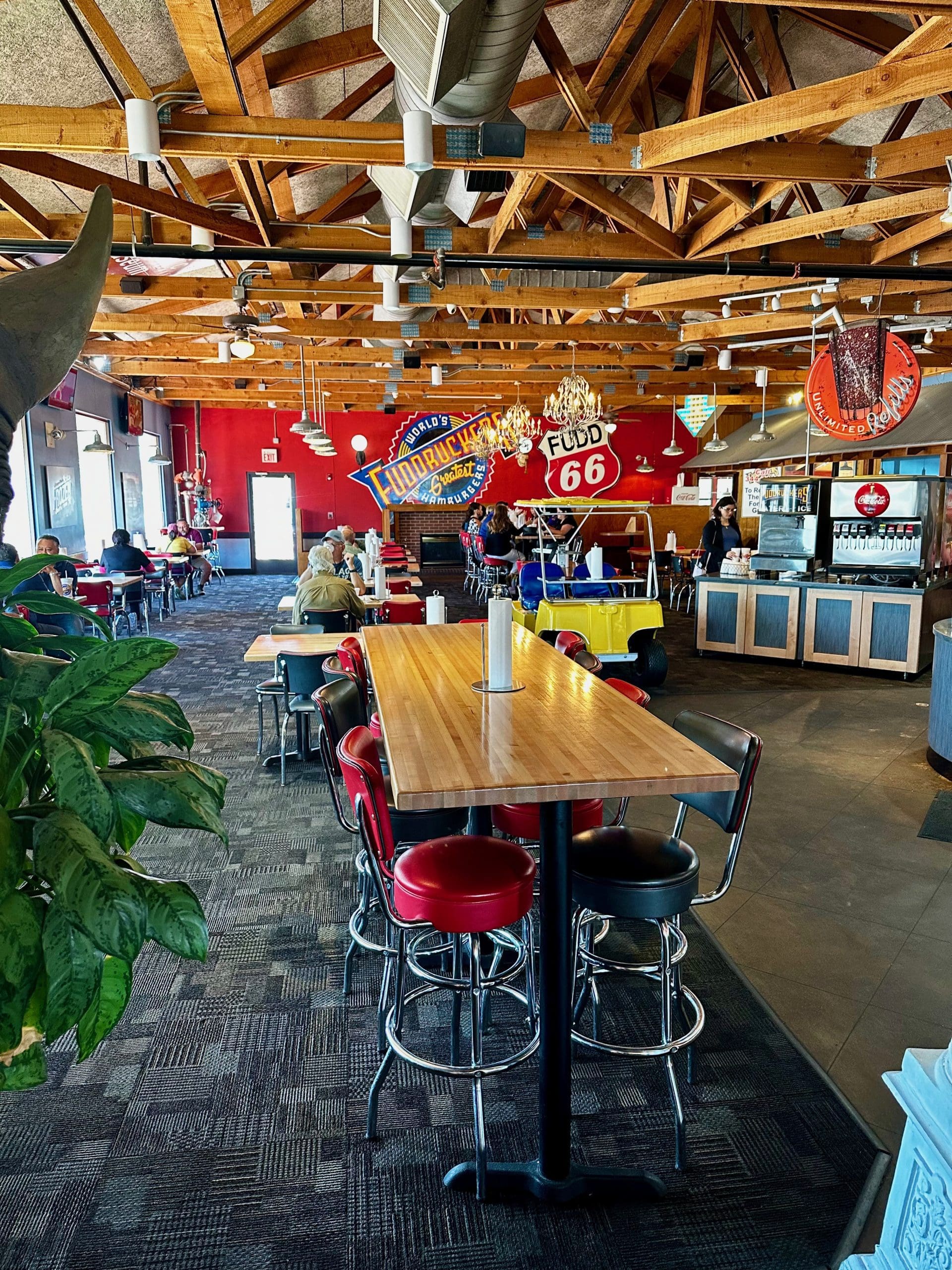 I succumbed to Fudd 66 being the NM GCCB Challenge winner and stopped into the one on I-25 frontage road, a bit north of Chile Rio. Has a nice, simple ‘roadside’ ambiance and especially if you sit in the “enclosed” patio as it gives you that feel Y’all are on-the-road with I-25 wizzing by, but also a nice airy view of the Sandias. On the other hand, if you are into visual overload of nostalgia, then the one on the Yale entry to the Sunport is for you.