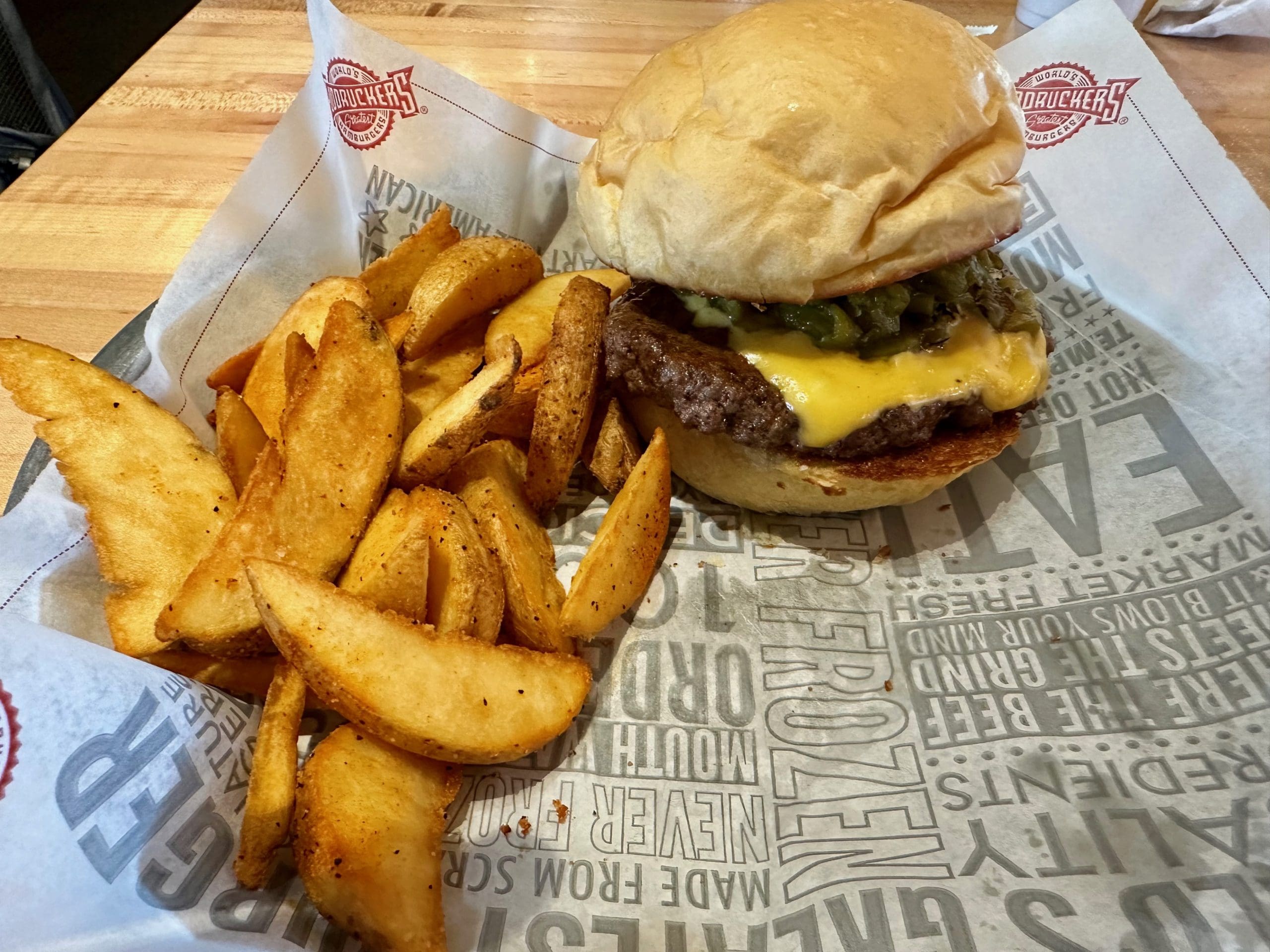 17 June 2024: The menu also features eight different specialty burgers such as the Fudd 66, Fuddruckers version of New Mexico’s revered green chile cheeseburger. Fuddruckers obviously recognizes the importance of the green chile cheeseburger to the Land of Enchantment, because this burger isn’t available across the fruited plain. Heat-seeking diners elsewhere have to settle for other specialty burgers such as the Inferno (sauteed jalapenos, onions and pepper jack cheese) and the Southwest burger (guacamole, pepper jack cheese and smokehouse bacon).