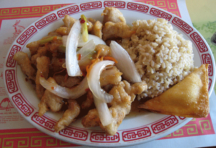 The lunch menu is relatively abbreviated though you can order off the diner menu during the noon hour as well. Lunch specials include the very best egg drop soup in Albuquerque as well as two crab and cream cheese wontons. The egg drop soup is of a thick consistency with generous bits of chicken and miniscule pieces of carrots, onion and celery. The soup has a very smooth, comforting flavor and is always served hot.