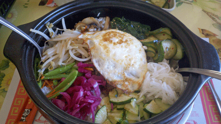 We asked about the Bibimbap. It is not shown on the menu. The proprietor told us they no longer serve it. He said it took at least 30 minutes to prepare and people were unwilling to wait for it, So they no longer serve it. Too bad. It’s a classic.