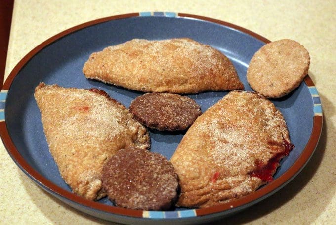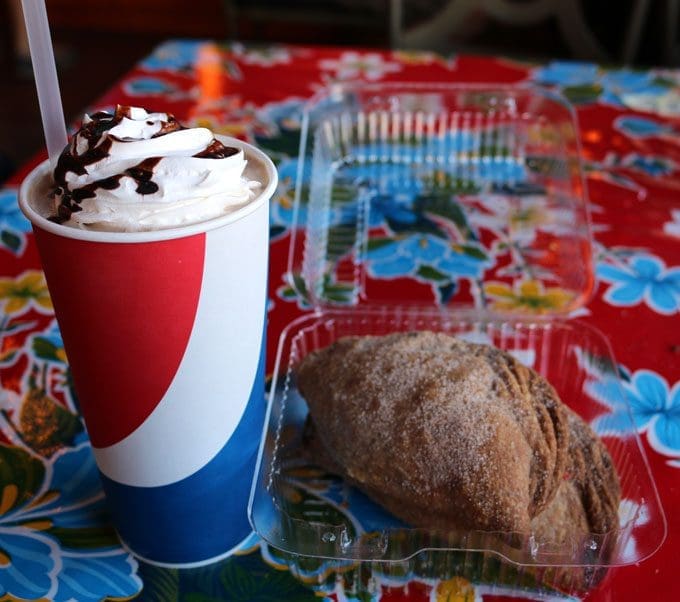 Another pastry favorite are the flautas (flutes). No, not the corn tortillas rolled around a filling of shredded chicken or beef then fried until crisp. These flautas are filled with glorious lemon or apricot filling and dusted with white powdered sugar. Not too sweet and not too tart, they are absolutely delicious. The Golden Crown’s empanadas are nonpareil, absolutely the very best in New Mexico–whether pumpkin, sweet potato, apple, blueberry, strawberry, apricot, lemon or raspberry. The crust is reminiscent of the biscochitos in both texture and flavor. Golden Crown even serves empanadas topped by ice cream. Who says you can’t top these empanadas?
