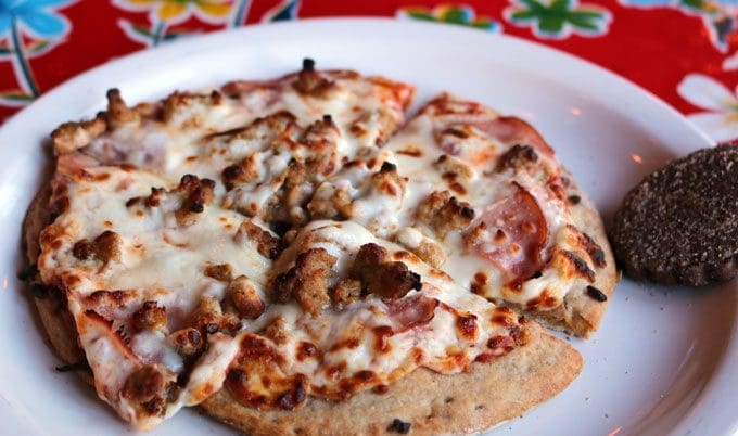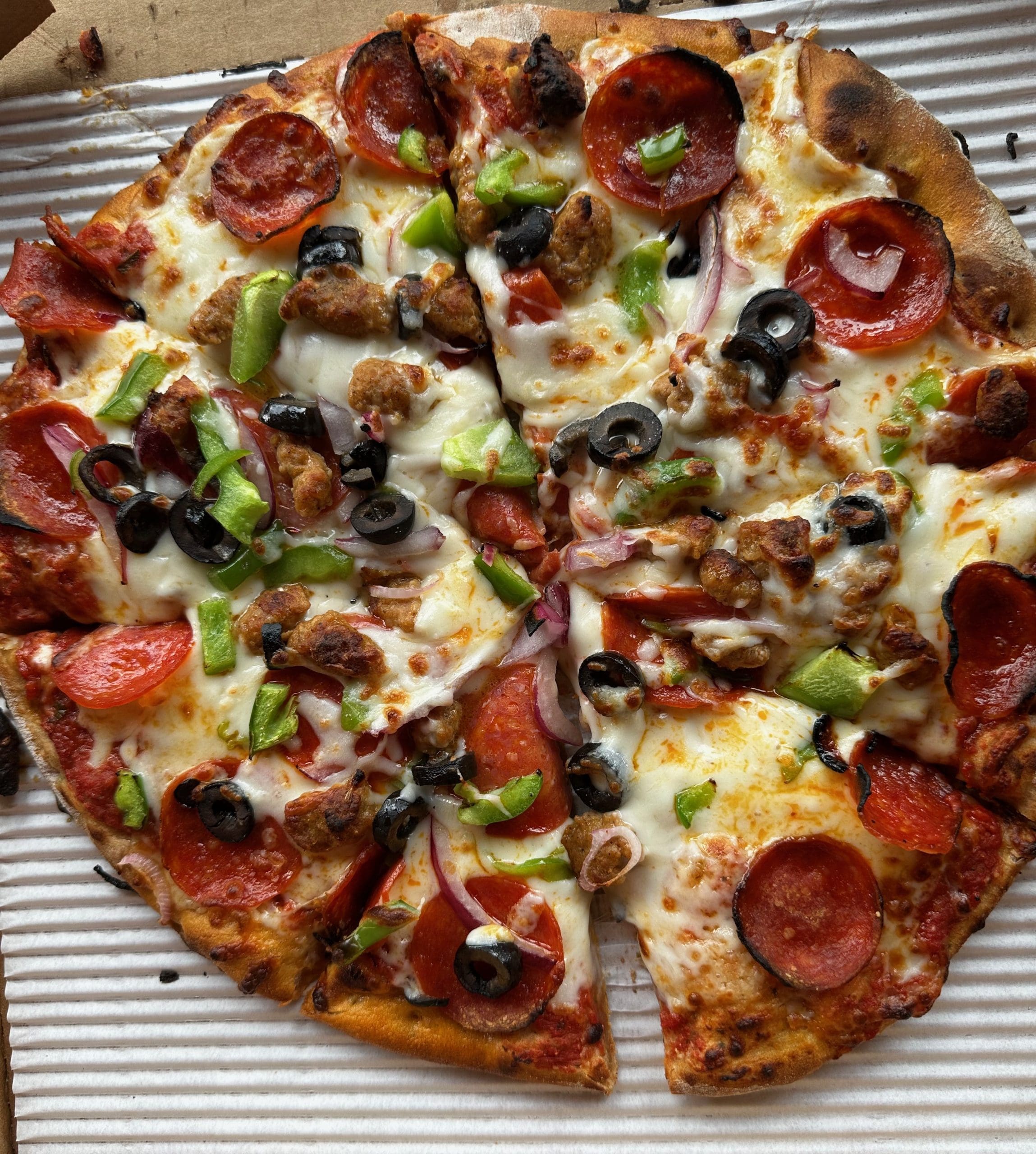 10 September 2023: This hand-tossed, thin-crust pizza features a housemade pizza sauce, mozzarella and your choice of ingredients in sizes ranging from personal to extra large (30% larger than the regular large). Gourmet toppings include anchovies, oven roasted chicken, artichoke and more. Each pizza is baked to order in about fifteen minutes baking time per pizza. Each pizza comes with a biscochito, an amuse bouche you don’t often see. The personal-sized combination pizza (tasty pepperoni, hearty Italian sausage, black olives, crisp bell peppers, red onions and mozzarella) is my favorite, an artisan-style pie that isn’t nearly as circular as what you might find at a chain, nor is the crusty rim of equal thickness throughout the circumference of the pie. Not that it matters much because every morsel of the pie is an adventure in deliciousness. At eight-inches, the personal-sized pizza is probably right-sized, but it’s so delicious you’ll want a larger sized pie to sate your pizza cravings.