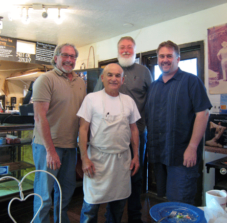 Had an awesome time with Sensei and his loyal grasshoppers celebrating Gil’s birth over Pizza. Not just any kind of Pizza but one you feel was baked by the bakers hand in the ‘old country’. Gil introduced us to Pratt Morales, the owner/baker who joined us at his table and told us amazing stories of his life and how organic and healthy the Pizzas are. What was amazing was they grew their own vegetables and spices (I had fresh basil that was plucked from the pot close to the counter). There are three choices of crust and I had the Blue Corn which was delicious. It was more of a thin crust which I understand is made with a large number (more than 20) of natural ingredients. I had the medium size with ground beef, mushrooms, garlic, basil and olives and I was extremely happy with it. It was a meal that could easily be shared with Senorena Plata when adding a fresh grown salad with most ingredients plucked from pots grown inside the restaurant. When Pratt, joined us, I was reminded a lot of my Grandfather who was a baker in the ‘old country’ of Greece and Turkey in the 1920’s and I understood he too built bakery items as natural as possible. I really felt comfortable having lunch there and look forward to returning…
