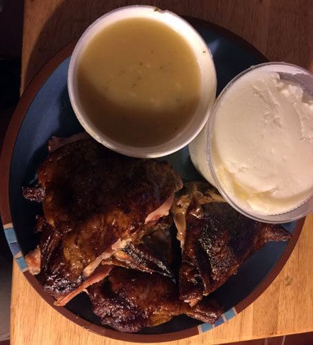 The Golden Pride concept is based on Gil’s Fried Chicken, owned and operated by Larry Rainosek’s brother Gil, in San Marcos, Texas. The name must be reflective of the golden coating on every piece of fried chicken served at the restaurant. The fried chicken is somewhat thickly coated but doesn’t have the “run down your arms greasiness” of Church’s or other chain purveyors of poultry. It’s a juicy chicken (and quite good) once you get past that coating (which I surmise seals in the juices).