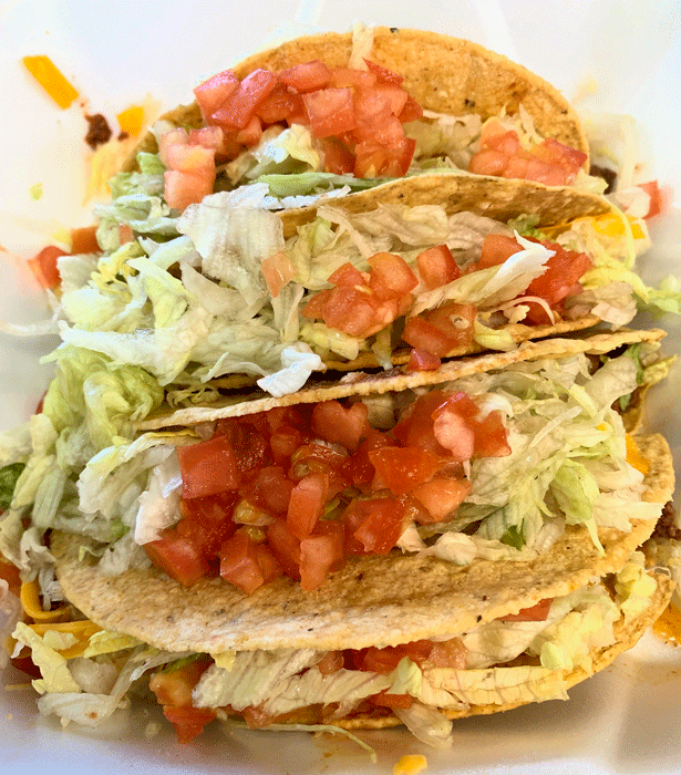 31 January 2020: Tacos are available in either a fried hard corn shell or a soft flour tortilla. The soft flour tortilla based tacos are about as large as Golden Pride’s burritos. My favorite is engorged with ground beef, green chile, cheese, lettuce and tomato–pretty much the standard taco. As for the hard-shelled tacos, you can’t go wrong with the chicken tacos. The chicken is moist and shredded. A popular shared option is the taco 6-pack, six hard-shelled tacos engorged with a seasoned beef, lettuce, tomatoes and shredded cheese. The seasoned beef has less kick than even the most mild Sloppy Joe sandwich. Packaged salsa, an anemic and rather piteous blend, is provided so you can add your own heat. In a city in which increasingly creative and outstanding tacos are easy to find, there’s little reason to settle for these.