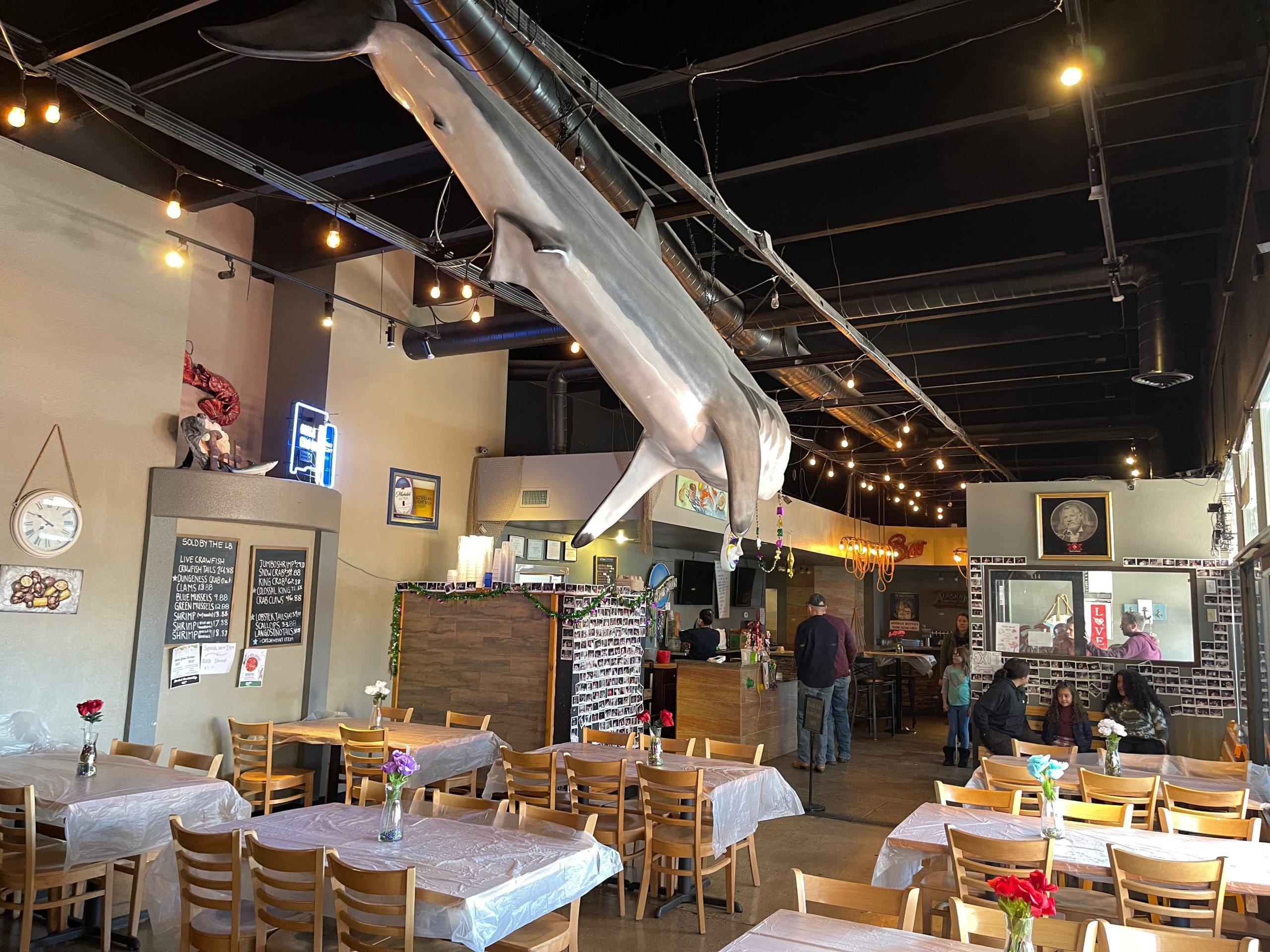 Obviously, the Duke City and landlocked New Mexico are at a disadvantage when it comes to just-caught, fresh-off-the-boat seafood, but modern transportation has made next day delivery of fresh seafood a reality. The other elements–foamy waves crashing along the beach, pristine sands as fine as talcum, marine layers of soupy fog in the morning–we’ll just have to imagine. Though it does sport a thematic seaside decor, stepping into the Down N Dirty Seafood Boil restaurant on Wyoming won’t transport you back to the coast–even with the ferocious shark suspended overhead. The seafood boil just might!