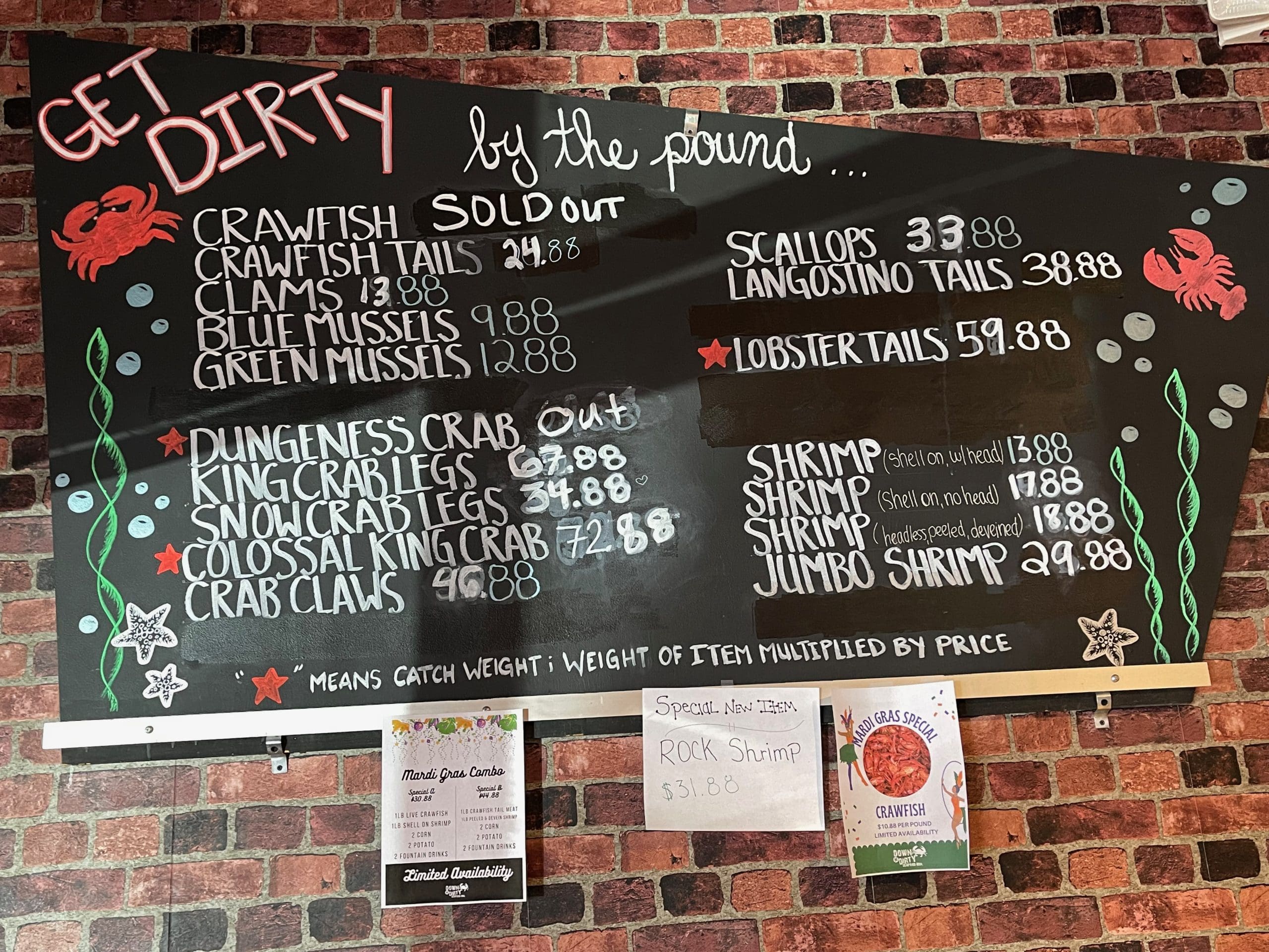 Kay and I went to Down N Dirty with great expectations and were profoundly disappointed. We had the worst lobster we’ve ever had. The meat in both the claws and the tail was tough and not very flavorful. We didn’t expect it to be as good as what we’ve had in Maine but what we got at DnD set a new low. We’ve had better lobster frozen from Albertsons!