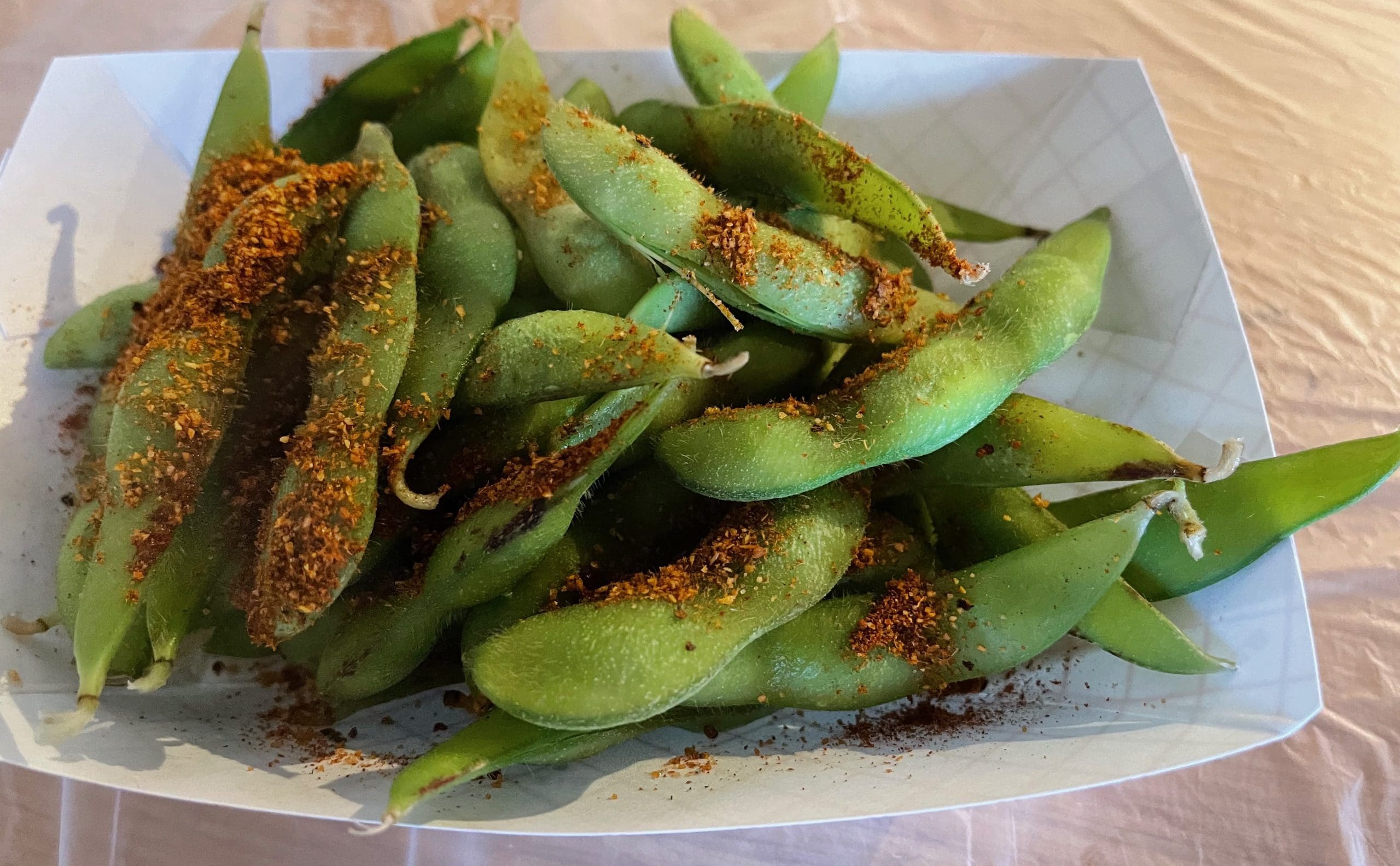 27 February 2022: We weren’t quite as enamored of another appetizer. The idea of Cajun edamame may be appealing, but in actual delivery it falls short. With all the seasoning on the shell of the young soybeans, the entire premise is poorly executed. None of the seasoning penetrates that shell. We had expected shelled edamame, out of the pod. Not only did the Cajun seasonings fail to penetrate that pod, we had to work to extricate the beans from those tightly sealed pods. This is one gastronome who doesn’t like to work for his daily bread!