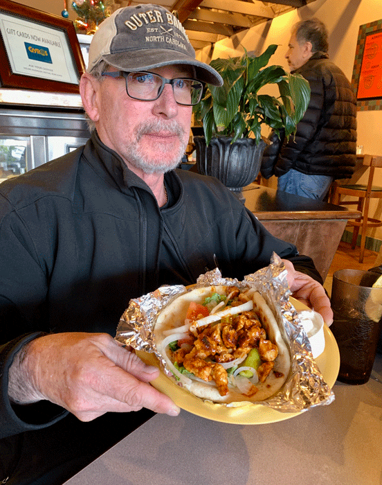 3 December 2019: What does it say about American pop culture that 2019 has been seen by culinary cognoscenti as “the year of the chicken sandwich?” That designation, of course, is based almost entirely on the popularity of fried chicken sandwiches at Popeye’s and Chick-Fil-A. Not one to follow pop culture trends–especially as they relate to frequenting popular chain restaurants–my friend Bruce “Sr Plata” Silver decided during his inaugural visit to Gyros Mediterranean to have a spicy chicken sandwich. This sandwich is wholly unlike the heavily breaded chicken sandwiches at the aforementioned chains. Instead of a single slab of poultry, Gyros’ spicy chicken sandwich is served shawarma style, a marinated chicken breast cubed, grilled with a spicy marinade and served on pita with lettuce, tomato, onion and tzatziki sauce. It’s not the most spicy chicken sandwich you’ll ever have, but it’ll titillate your taste buds and sate your appetite well.