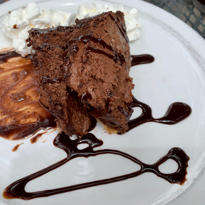 17 May 2019: Albert Einstein posited that “Anyone who has never made a mistake has never tried anything new.” Ordering the chocolate mousse pie at Hannah & Nate’s is one of the most delicious mistakes my Kim ever made. We knew we had a hit when all eyes on the capacious dog-friendly patio followed our server as she ferried a hunk of that light, velvety deliciousness to our table. Before long, more slices began making their way to other tables. When it comes to mousse, we’ve both always somewhat indifferent. With this one, we’re taking a stance! It’s one of the best mousse desserts we’ve ever had!