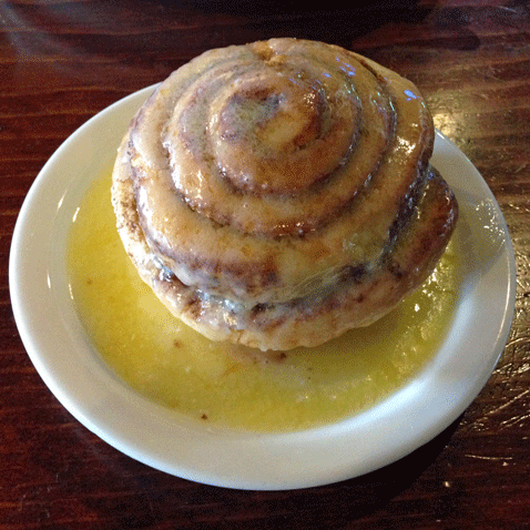 Kelly’s offers a skyscraper of a cinnamon roll. Easily three-inches tall, it sits in a buttery-sugary pool and is so sweet and cinnamon-rich that it might just have you pinging off the walls in a sugar rush. It’s a very good cinnamon roll, but it’s one made for sharing as no one person should consume so much butter and sugar (or eat a brick-sized dessert).
