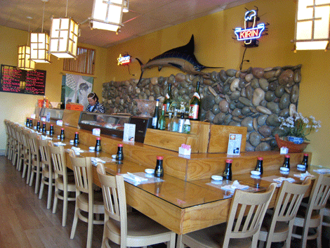 He further observes that there is a definite hierarchy of sushi loving white people, ranging from the “spicy tuna/California roll eaters” (who don’t really care about the authenticity of the sushi as much as they do the experience of eating it) to the “white sushi snobs” who “only sit at the sushi bar, will try to order in Japanese” and will complete the authentic experience by washing their sushi down with sake. One sushi restaurant which will appease all white people is the aptly named I Love Sushi restaurant at the Del Norte Plaza shopping center on San Mateo.
