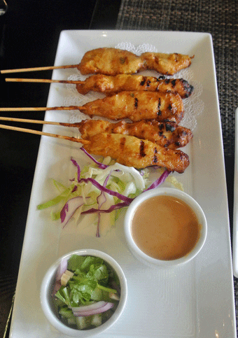 1 February 2014: Somehow the “Big Bang Theory” personality assessment surmised that Sheldon Cooper and I are compatible–at least in terms of our common affinity for chicken satay with extra peanut sauce. The persnickety physicist would love Tara Thai’s chicken satay, five chicken skewers marinated in yellow curry served with a peanut curry sauce and cucumber salad. With a savory-sweet flavor profile, the peanut curry sauce is magnificent as is the cucumber salad, but the chicken is the star. It’s fresh, moist and imbued with the sweet-savory-pungent flavors of a superb yellow curry.