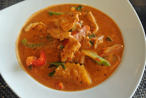 1 February 2014: With his propensity for repetition, Sheldon would not enjoy Tara Thai’s fall specials, a five item menu so enticing even the non-OCD among us will be hard-pressed to decide which to have. How, for example, can you pick from among Asian pumpkin red curry with chicken and duck curry? The answer, of course, is to order one today and return for the other tomorrow. The Asian pumpkin red curry with chicken is superb, an amalgam of hearty Asian pumpkin chunks, white meat chicken, red chili paste curry in coconut milk with bamboo shoots, bell pepper and fresh Thai basil. This is Thai comfort food at its finest, especially if you order it at least “hot.” It quickly became my favorite Thai dish in Albuquerque. That will probably last until my next visit when I order the duck curry.