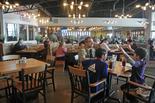 The Stumbling Steer opened its doors for both lunch and dinner in February, 2014, occupying a rambling edifice which housed The Quarters since 1994. There are few, if any, vestiges of The Quarters in sight. Thematically, The Stumbling Steer is a mishmash of western ranch meets neo-modern. Just above the entrance to the yawning complex is an elevated water tank emblazoned with the gastropub’s moniker. A sprawling covered patio increases the restaurant’s 270-seat capacity. The interior is cavernous, segmented into a bar area and a dining area although you can eat at both. It’s a brightly lit space. Seating is just beyond personal space proximity and is more functional than it is comfortable. The ambiance is festive (or you can translate that to “noisy” if you’d like) and fun.