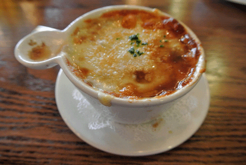 ~ Lastly, the French Onion Soup (FOS): Flavorful, but watery. Separate from the onions, cheese, and bread I was going to make a comment that many local FOSs seem watery and altho it’s been awhile since he’s closed, I think my slight favorite in the City would have been Chez Bob’s ‘broth’ as having a slightly ‘thicker’ quality to it. As no one has talked about FOS in general, I began wondering if in fact ‘watery’ is actually the Gold Standard and so I searched to find some Folk indeed do beef up their beef stock http://tinyurl.com/kdd9n9f. Anyone have a particular Local…to-die- for FOS FAV?