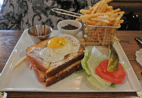 ~ While I typically don’t do lunch, I’m thinking I could be tempted to return one of these days to see what Gil’s sense of “beefiness” was re the French Onion soup as I think I once thought someone’s was not watery as another. In addition, his pic of the Monte Cristo Prochetta has a certain come hither look to it. Otherwise, a place that will only extend you a reservation if you are a party of 10 or more, is a bit off-putting IMHO. (Geez, after rereading that, I’m thinking I should’ve had a salad for a little more roughage in my diet.)