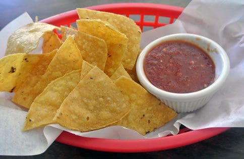 As at most New Mexican restaurants, the salsa is the most piquant item at Leroy’s. It’s a rich red salsa as good as you’ll find in Albuquerque and it’s plenty piquant. Don’t dare reach for water, however. Trust me on this–the salsa should be paired with Leroy’s steaming hot coffee (and that doesn’t mean adding a spoonful of salsa into the coffee or vice-versa). Coffee accentuates the piquancy of chile while the chile seems to gain heat. The chips are low in salt and crispy.